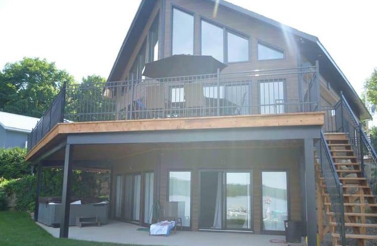 Vous avez accès à une très grande cuisine, vous permettant de vous faire une bonne bouffe entre amis. La cuisine et le salon sont à aires ouvertes et climatisés. Tout le chalet est fenestré permettant d’admirer la magnifique vue sur le lac soit du salon, de la cuisine, du bar ou de la mezzanine.